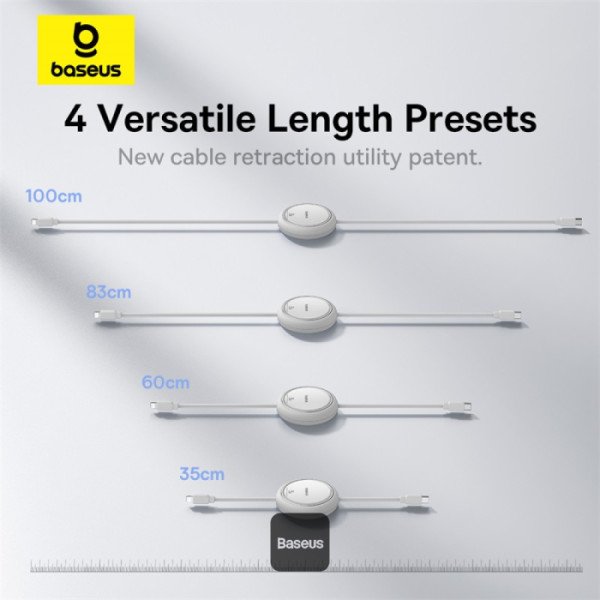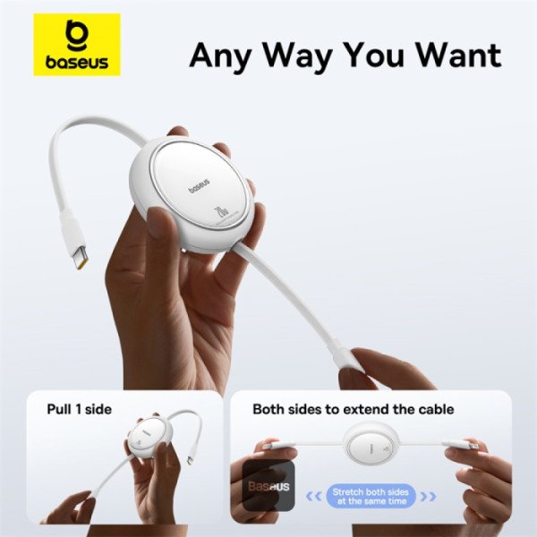 Baseus 20W Free2Pull Both-Way Retractable Type-C to Lightning Fast Charging Data Cable 1M – White