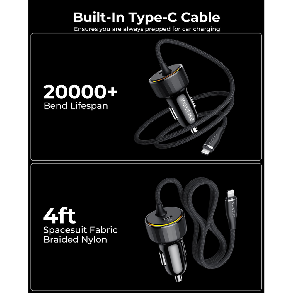 Voltme Cazo Speedo+ 60W USB-C Car Charger with Built-In Cable